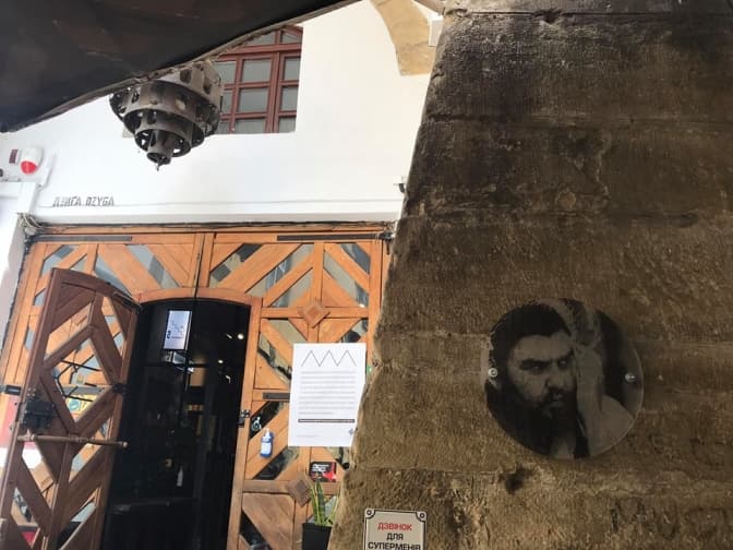 Біля столика, де сидів Маркіян, облаштували культове фото діяча.