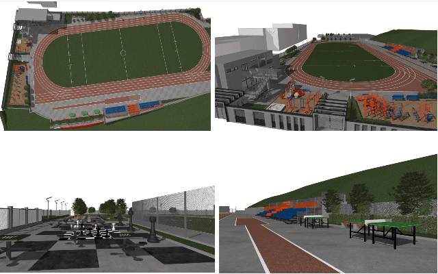Роботи із реконструкції спорткомплексу поділили на три частини. Почнуть із дальньої частини стадіону, з тенісних кортів і їх огородження. Наступний етап – атлетична база із поліуретановими доріжками, ямою для стрибків у довжину, трибунами, регбійним полем зі штучною травою. І третім етапом буде реконструкція самої адмінбудівлі. Там облаштують оглядовий майданчик з камерами спостереження.