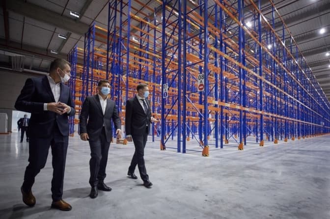 Після полігону Володимир Зеленський заїхав на будівництво логістичного центру на Львівщині на об’їзній Львова, де мають створити дві тисячі робочих місць. Тут будують майже 100 тис. кв. м. Логістичний центр має бути найбільшим на заході України.