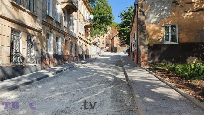 Посередині вулицю, яку нещодавно відкрили після реконструкції, виклали гладкою бруківкою, а по краях замостили дещо крупнішою.