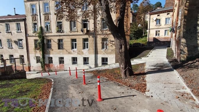 Тут територію мають вирівняти. І облаштувати сходи до вулиці Пішої, яку також щойно завершили реконструювати.