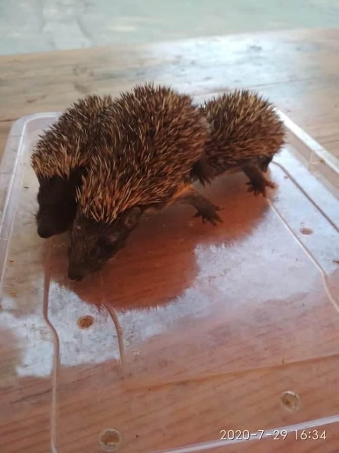 «Вони прибули до нас на початку літа ще зовсім маленькими та сліпими. Їх знайшли у Тернополі на дорозі. Вигодовувати їх з початку сумішшю котячою (молоком). Потім, коли вони відкрили очі, стало трішки легше. Повернули їх в природу у парку Знесіння», – розповів Орест Залипський.