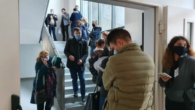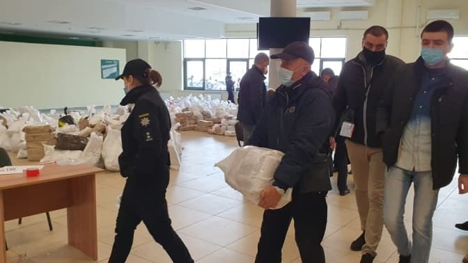 На першому поверсі, у холі «Арена Львів» голови виборчих комісій у супроводі поліції Львова у мішках залишають самі бюлетені. На 2 поверсі – здають усю виборчу документацію.