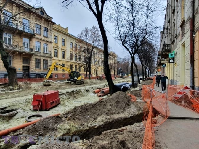 Ремонт вулиці розпочали 28 вересня, роботи тривають 2,5 місяці. Зараз підрядник виконує інженерні роботи. Трамвайні рейки монтуватимуть після нового року. Після того, як встановлять рейки, почнуть замощувати вулицю.