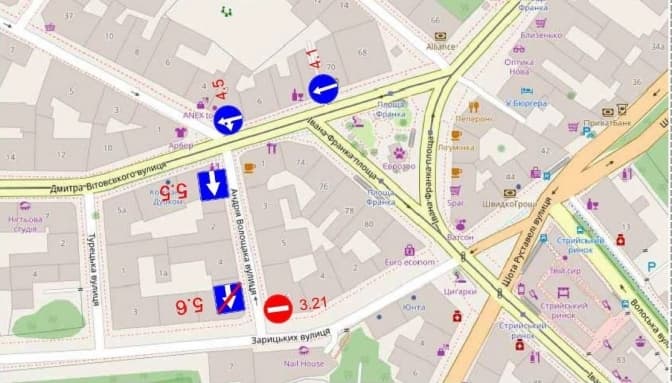 «Від центру є дві смуги руху. Крайня права – це для громадського транспорту. Посередині є рух автомобілів. За зупинкою закінчується смуга громадського транспорту, йде звуження. Автомобілі об’їжджають трамвай і рухаються у напрямку вулиць Вітовського або Сихова. На цій вужчій ділянці часто рух трамваїв блокують авто, які хочуть здійснювати маневр навколо трикутника площі», – розповідає Роман Зубачик.