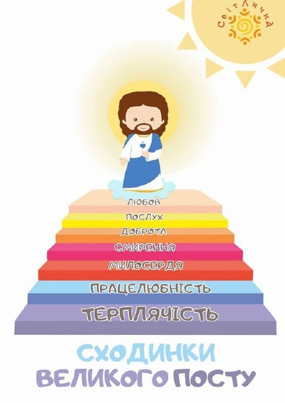 На кожен тиждень для діток є цікаві історії, ігри та майстерки, що демонструють чесноти на практиці, поради, в який спосіб говорити з дітками про цінності у зрозумілій їм формі. Ми створили постер , який можна роздрукувати і повісити вдома на видному місці і усією сім’єю пройти сходинками цього посту і прожити цей період по-особливому глибоко.