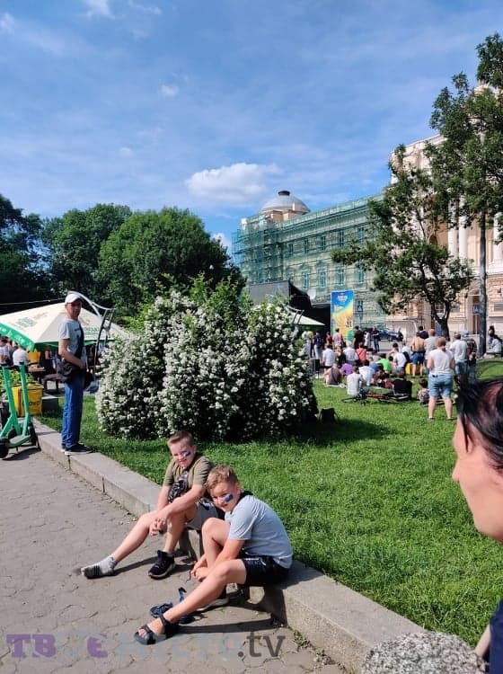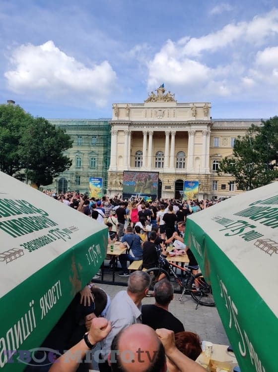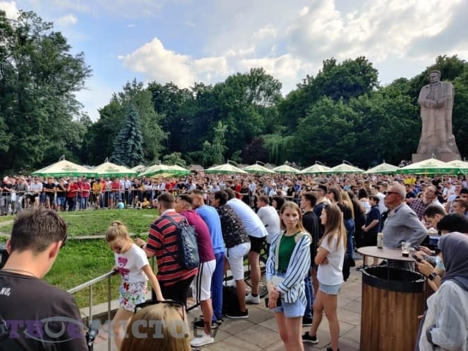 У фан-парку перед ЛНУ ім. Івана Франка встановили великий екран. Тут зібралися чимало вболівальників. Вхід на територію вільний.
