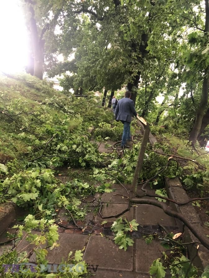 Окрім цього, унаслідок негоди повалило дерева. Зокрема, у центрі міста, на вул. Просвіти, а також на перехресті вул. Стрийської – Наукової та вул. Окружній. Львів'яни публікують фото та відео з наслідками негоди у соціальних мережах.