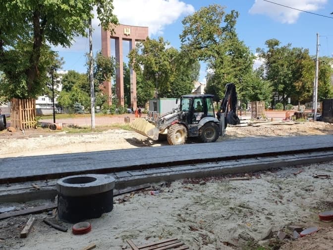 Зараз завершується облаштування верхнього покриття. Залишилося зробити вуличне освітлення і контактні мережі.