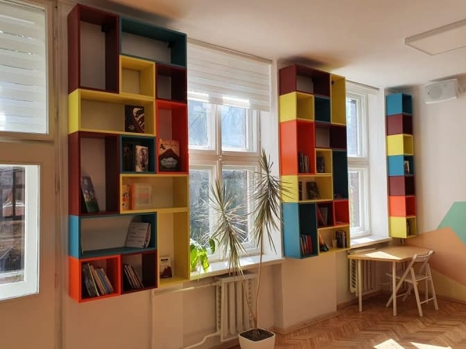 «Тут працювала дизайнерка, яка дуже відповідально підходила до справи. Більше місяця вона вела комунікацію з керівницею нашої студії про те, що потрібно забрати чи додати, адже в класі були старі зруйновні стелажі, які займали багато місця», – каже Леся Онишкевич.