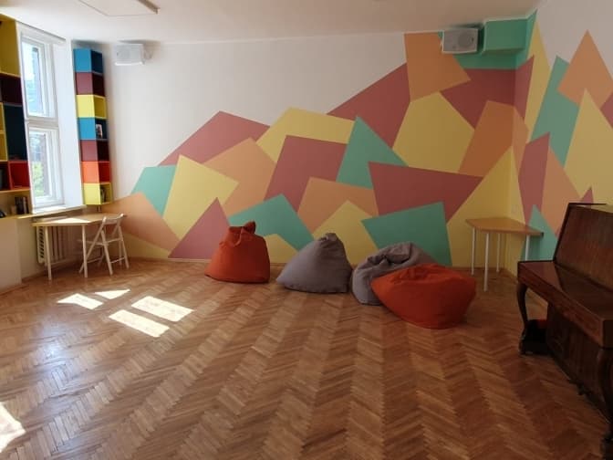 «Часто тут займаються діти, які під час малювання хочуть присісти на підлогу, тому ми закупили спеціальні подушки, щоб було зручно і не холодно», – каже вона.