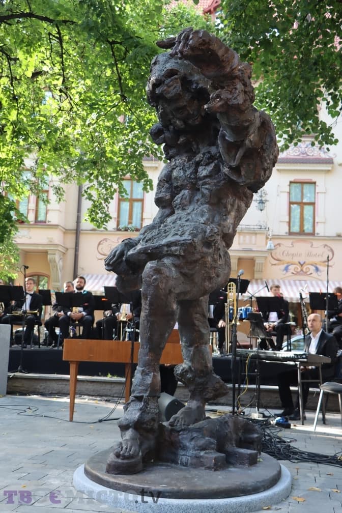 Додамо, автором постаменту є скульптор Себастьян Швайкерт. Сама ж Оксана Линів пояснила, що з одного боку тут показали епатажний образ композитора, а також непросту долю Моцарта молодшого, що припала на зміну мистецьких епох.