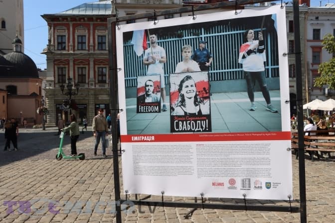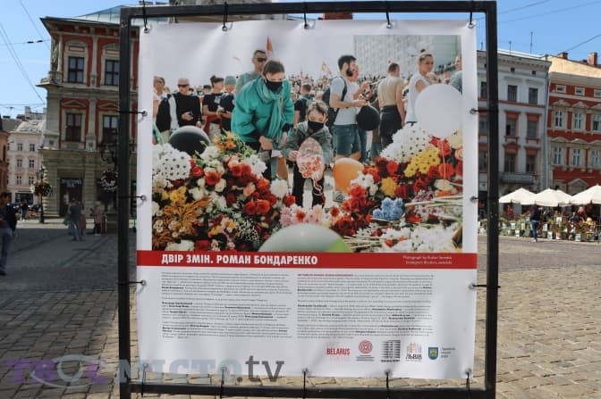 На площі Ринок у Львові відкрили виставку «Рік спротиву: як по(в)стає Білорусь», також там відбувся віче-концерт бардівської пісні.