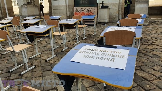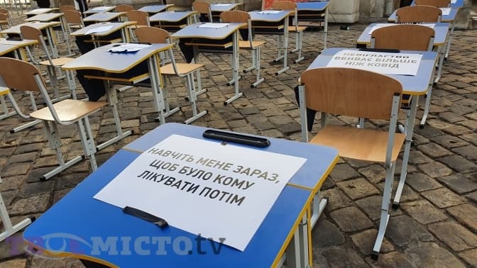 У Львові батьки закликали міськраду, аби у місті дозволили очне навчання школярів. Під міськрадою зібралося лише кілька представників, враховуючи епідситуацію в місті. За словами учасниці акції, а також голови постійної комісії освіти та науки Львівської міської ради Вікторії Христенко, мета – дозволити дітям ходити до школи, де є вакциновано 100% персоналу.