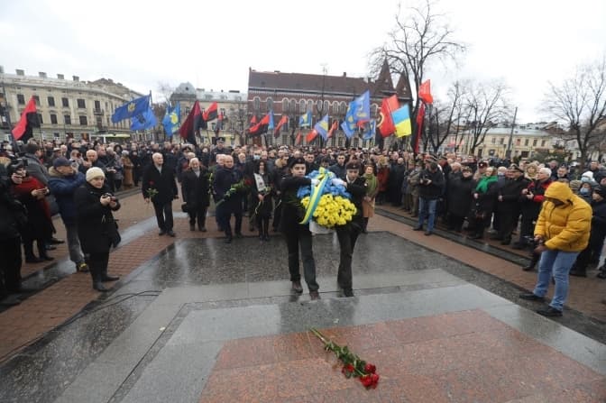 Сьогодні, 1 січня у Львові відзначили 113-у річницю з дня народження керівника Проводу ОУН, Героя України Степана Бандери. На площі біля пам’ятника історичній постаті відбулася спільна молитва за Україну та громадське віче. Також під час заходу лауреати обласної премії ім. Степана Бандери отримали нагороди.