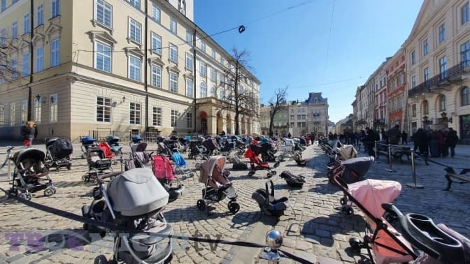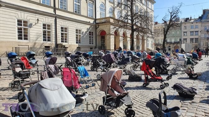 На площі Ринок у Львові організували соціальну акцію «Ціна війни», аби привернувати уваги до смертей безневинних українських дітей. Так, 109 дитячих візочків в центрі міста символізують 109 вбитих з часу повномасштабного вторгнення ворога дітей.