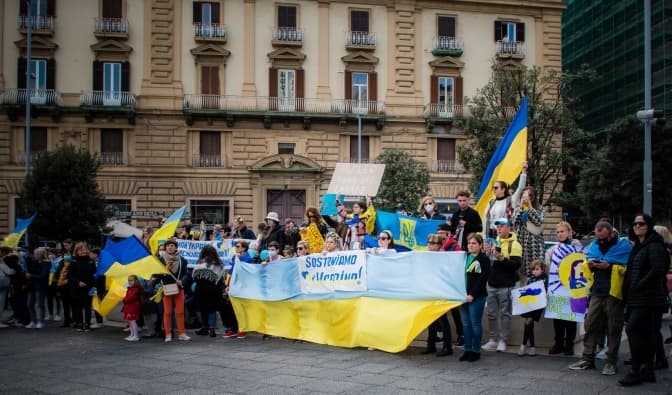 Сьогодні у світі відбулися масові акції на підтримку України, зокрема пройшов мітинг в італійському Неаполі. Сотні людей вийшли з плакатами проти війни та з українськими прапорами. Відповідні фото опублікував Петро Ясенівка у Фейсбук.
