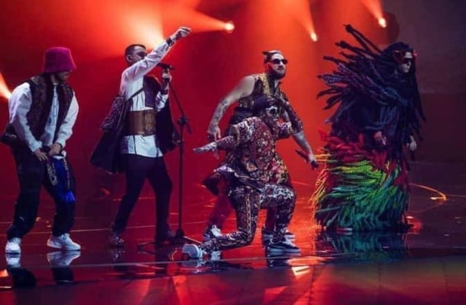 Український гурт Kalush Orchestra вийшов до фіналу пісенного конкурсу Євробачення-2022. На головній сцені представники України виконали пісню «Stefania», зал слухав виступ України стоячи.