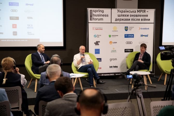 «Ми перебуваємо на порозі втрати 20 років економічних досягнень. 25% населення України вже постраждали від цієї війни. Звісно, ми говоримо про відшкодування збитків і втрат, але ми також ведемо мову про те, що треба й надалі інвестувати в системність. Це ті «цеглинки», які формуватимуть життєздатне стійке середовище в Україні».