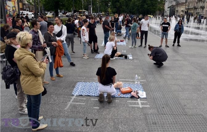 На площі Свободи перед Оперним театром у Львові стартувала Всеукраїнська акція «Запустимо серця разом». Зокрема, 20 досвідчених тренерів просто неба навчали охочих надавати домедичну допомогу, яка рятує життя людей у перші секунди при раптовій зупинці серця.