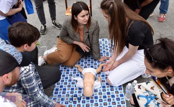 Тренування із надання допомоги та роботи із дефібрилятором для всіх охочих проводили на манекенах та самих людях.