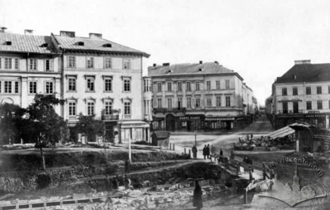 Все, що залишилося від фортифікацій, то це фрагмент стіни біля рекоструйованої «Вежі Крамарів». А найдавнішою будівлею слід вважати будинок 1-3, розташований на розі вул. Коперника і пр. Свободи. Його побудували у два етапи за проектом невідомого архітектора: в 1809-1811 звели його ліву частину (будинок №1 від вул. Коперника), а в 1821-1822 – праву частину (будинок №2). Спочатку будинок належав торгово-банківській фірмі «Й. Гауснер та В. Віолянд» (так звана кам’яниця Гауснера), а в 1845-1939 власником будинку стало «Кредитне товариство землевласників».