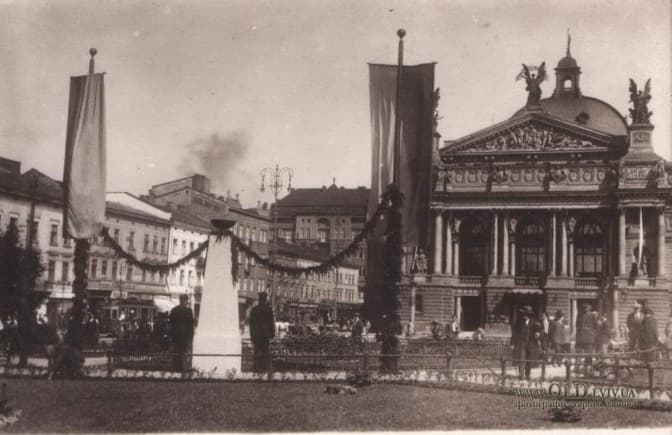 Завершується проспект будівлею Оперного театру. Про цю будівлю є дуже багато публікацій та розповідей. Сам театр зводився не на проспекті, а на окремій площі, котра називалася площею Голуховських. Хочу зупинитися на історії площі перед театром. Коли я був школярем, то ще перед театром був проїзд для транспорту, а у 30-і роки 20-го століття польська влада спорудила перед театром меморіал. Сюди було підведено газову трубу та облаштовано чашу з «Вічним Вогнем». Поруч постійно виставлялася почесна варта. Після радянської окупації 1939 року меморіал знесли, а газову трубу заглушили. Коли у 1941 році до Львова ввійшли німецькі окупанти, то вони по-своєму використали вже існуючу трубу. Тут спорудили великий куб із написом «Adolf Hitler Ring».