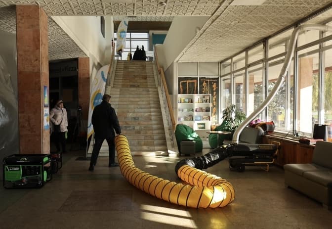 У Центрі Довженка, що на Сихові у Львові, облаштували один із перших пунктів обігріву в місті. Він може прийняти одночасно 150 людей. Тут є кілька генераторів, «буржуйка», теплова гармата на дизелі, речі першої необхідності та ігрова кімната.