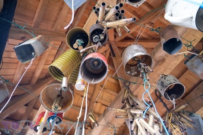 Масштабна конструкція передбачає нанизування різноманітних дзвонів та всього, що може виконувати їхню функцію.