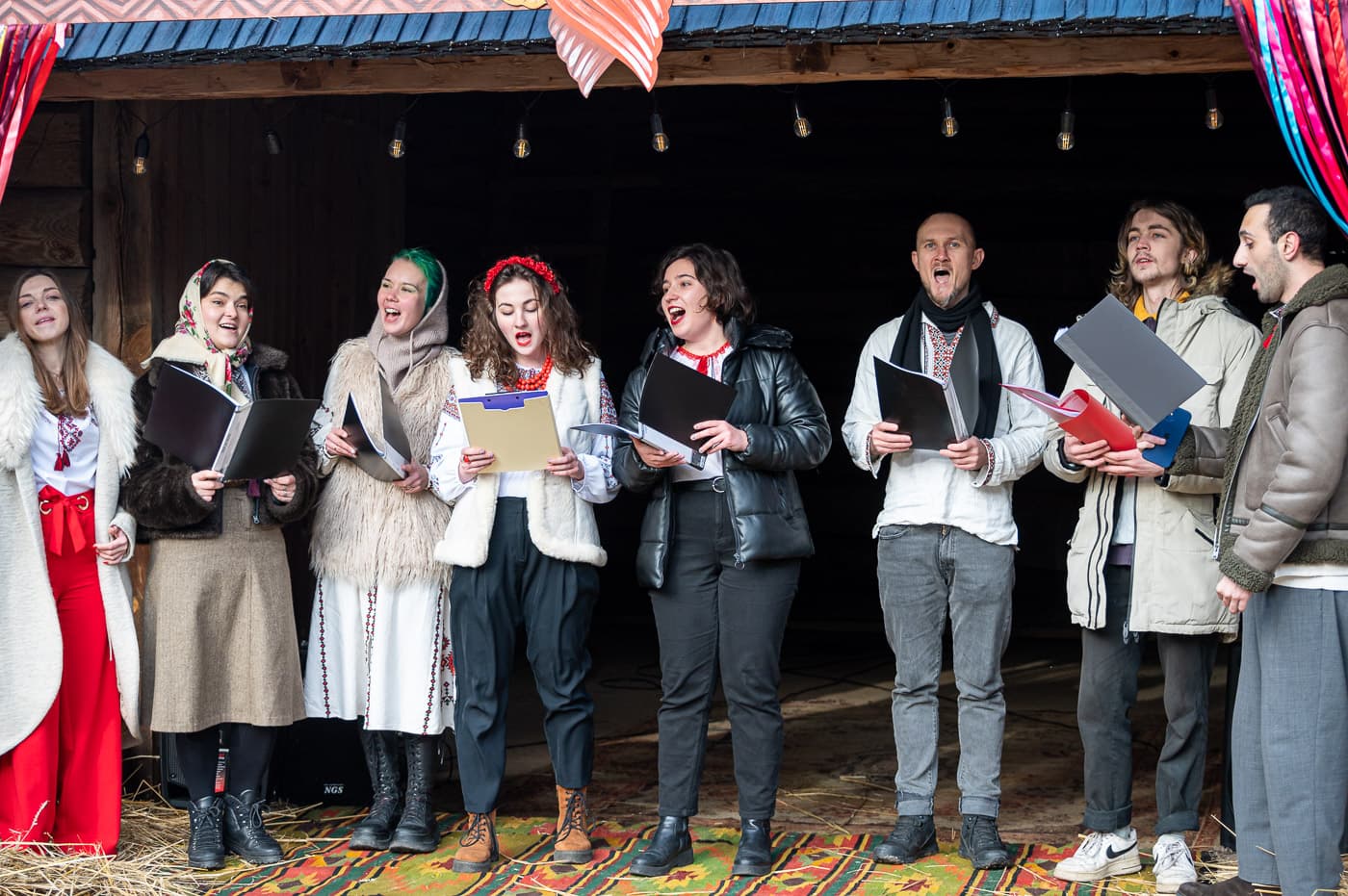 «Цьогорічне святкування не таке вже й святкове. Особливості організації свята були в тому, що треба було врахувати, як бути у випадку повітряної тривоги, але ми робимо все, що в наших силах. Також була складність у тому, щоби зібрати колективи, бо деякі з минулого року припинили свою діяльність – більшість дітей пороз’їжджалися. Отож цього року більшість вертепних колективів дорослі. Також ми підготували співаник із 10 колядами та колядками, які збирали по селах різних регіонів, також у ньому вміщена інформація, звідки та чи та пісня, хто її співає. А ще можна вивчити пісню по нотах за QR-кодом і почути її виконання. Купуючи співаник – ти стимулюєш культуру і допомагаєш армії. Це подвійний донат: спершу на розвиток автентичних колядок, а відтак на ЗСУ», – запевняє Марія.