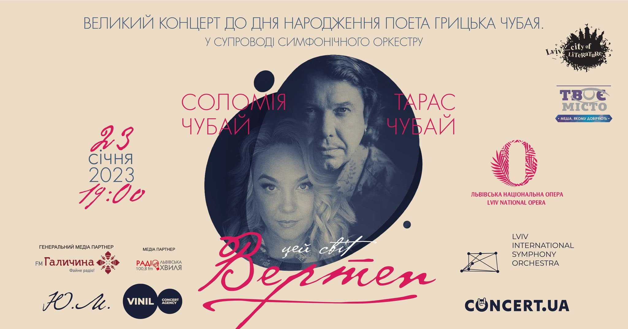 «Цей концерт унікальним тим, що Соломія і Тарас вперше разом виступлять на великій сцені з сольними проєктами. Вони представлять унікальні пісні на слова відомих поетів, колядки та повстанські пісні. І це все на честь Дня народження їхнього батька – Грицька Чубая та відкриття вулиці його імені у Львові», – кажуть організатори концерту VINIL Concert agency.