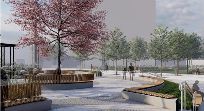 Концепцію скверу біля станції «Героїв Дніпра» розробили спільно з «Київзеленбудом» і пропонують містянам до обговорення. Парк мають створити замість будівництва торгово-розважального центру. Візуалізацію презентувала депутатка Київради Мирослава Смірнова.