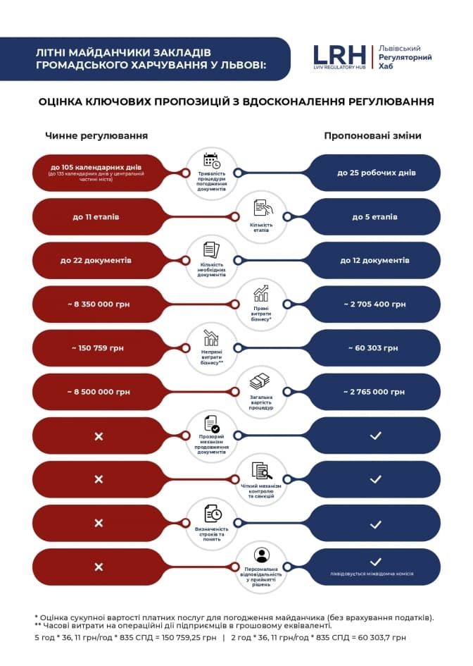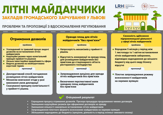 У 2016 році команда Львівського регуляторного хабу дослідила проблемну сферу регулювання літніх майданчиків та виокремила декілька основних проблем: