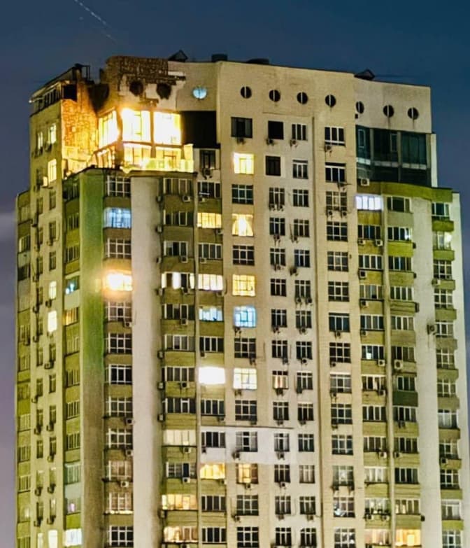 Зокрема, в результаті атаки було пошкоджено квартиру телеведучого телеканалу ICTV Андрія Ковальского.