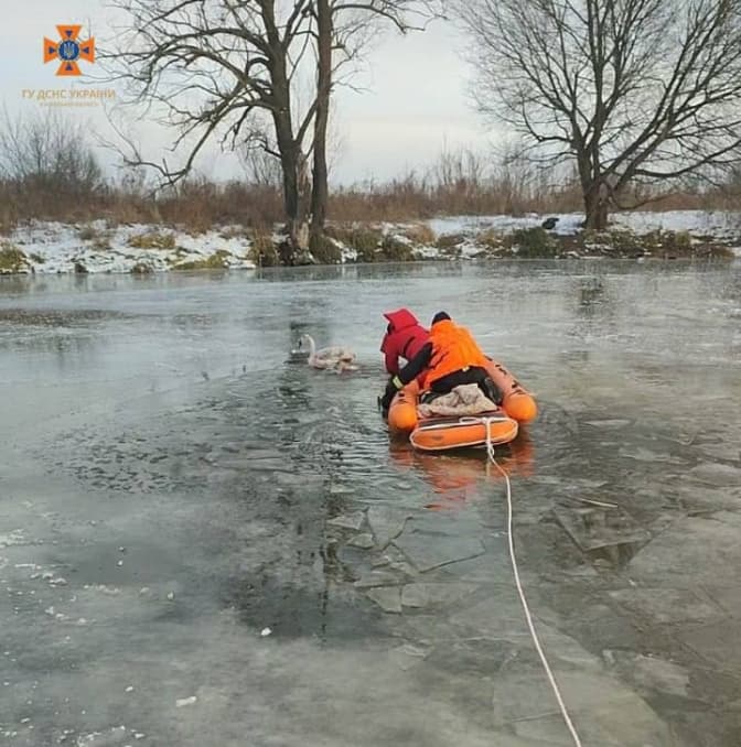 Врятованого лебедя передали до служби захисту тварин для подальшої реабілітації.