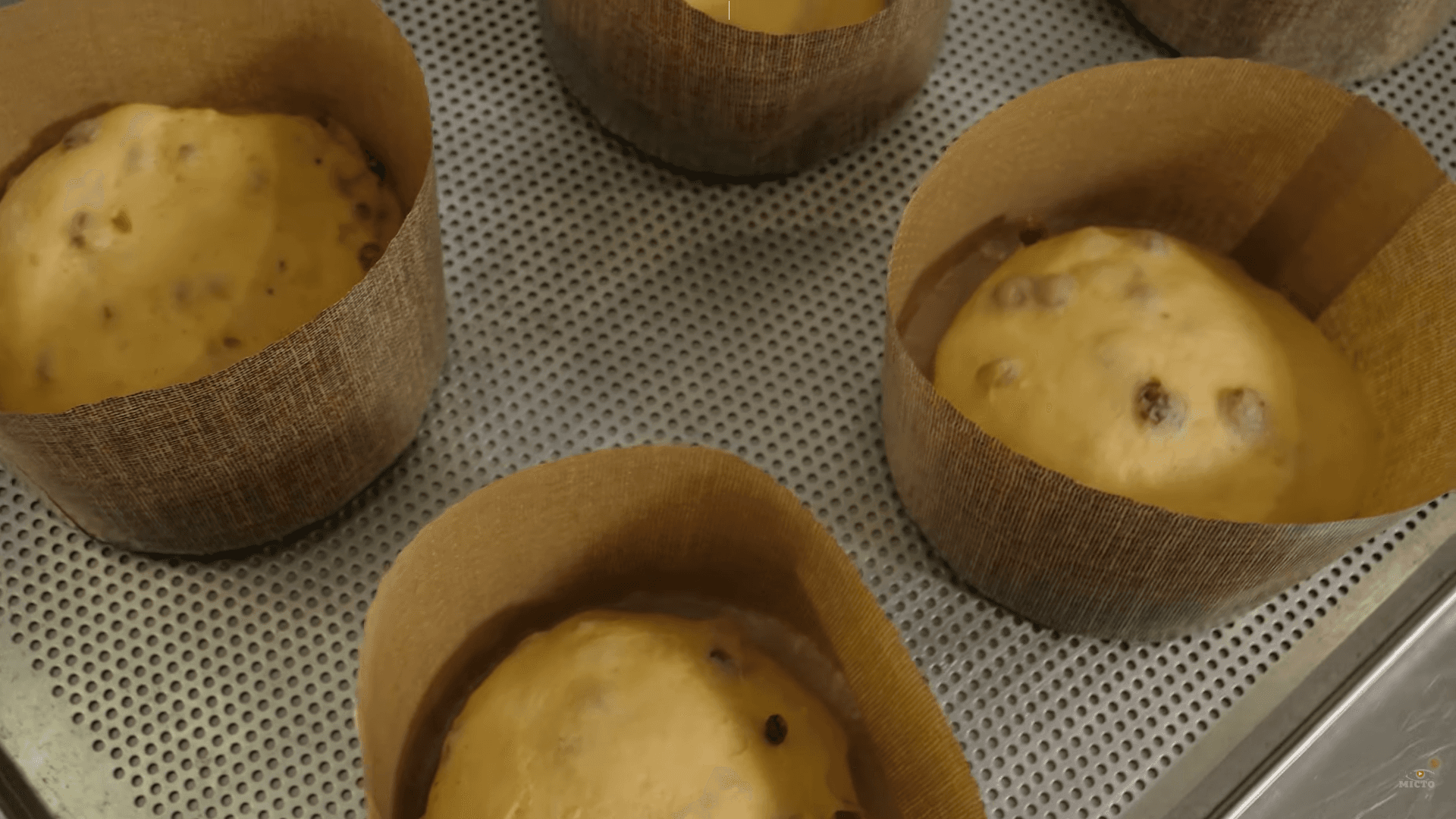 Ми виклали наші п’ять частин тіста в форми і залишаємо їх на ферментацію на 60-75 хвилин. Обов'язково в теплі. Оптимально поставити їх в духовку на температуру 30 градусів. Це для того, щоб верхівки пасок не завітрились. Якщо буде різкий перепад температури, паски можуть перестати рости. А при холоднішій температурі тісто буде гірше підніматися.