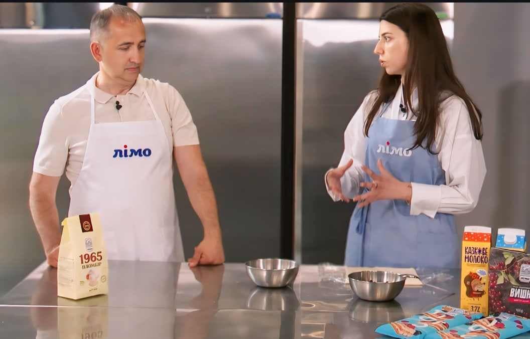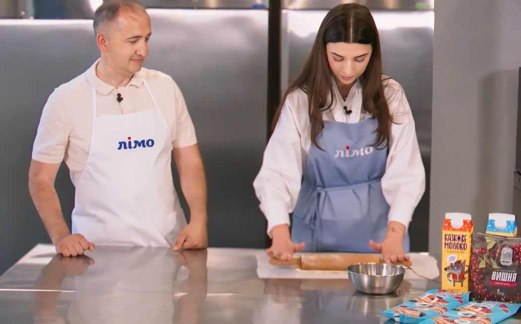 Для рецепта штрудля маємо все від торгової марки «Лімо». Наша компанія є клієнтоорієнтованою: ми хочемо, щоб наші клієнти проводили максимум часу зі своїми дітьми, тому й створили ось це прекрасне тісто. Також маємо для цього штрудля вишні, начинку, яку також реалізуємо під нашою торговою маркою. І, звичайно, морозиво, яке покладемо збоку.