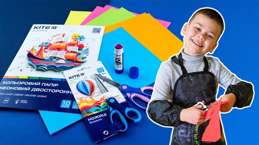 Не забудемо і про клей: у Kite Classic є як ПВА, так і клей-олівець, який легко наноситься і не залишає слідів. Це робить створення поробок ще простішим, а роботу – акуратнішою. І, звісно ж, ножиці – безпечні та зручні для дитячих рук, що дозволяє легко вирізати будь-які форми, тваринок чи геометричні фігури.
