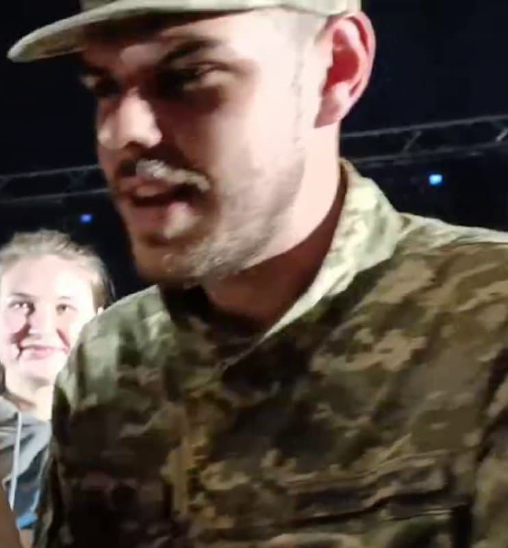 На фото з поверненням військових його видно внизу, посередині.