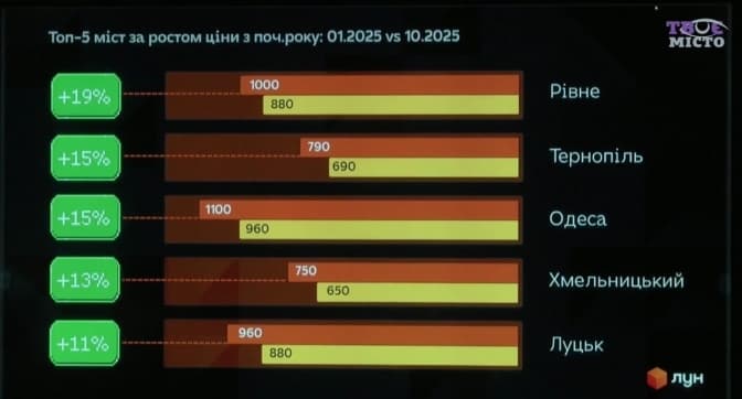 - Рівне – також 17% за рік.
