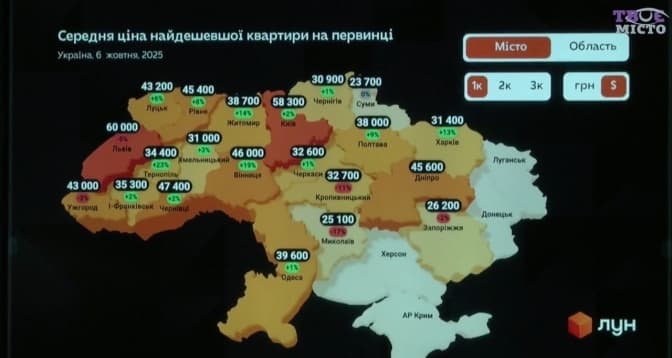 - Івано-Франківська, Закарпатська, Тернопільська області та інші регіони – разом складають 28%, або 25 тисяч квартир.