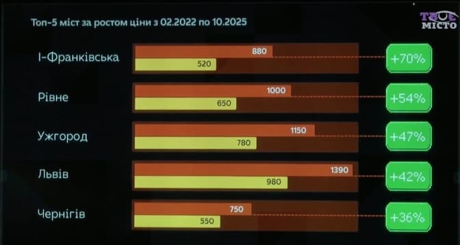 На п'ятому місці – Чернігів, де ціни зросли на 36%.