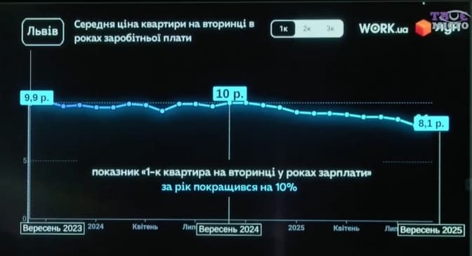 - Львів – минулого року ціна становила 65 тисяч, зараз трохи знизилася на 500 доларів, тобто - 1%.