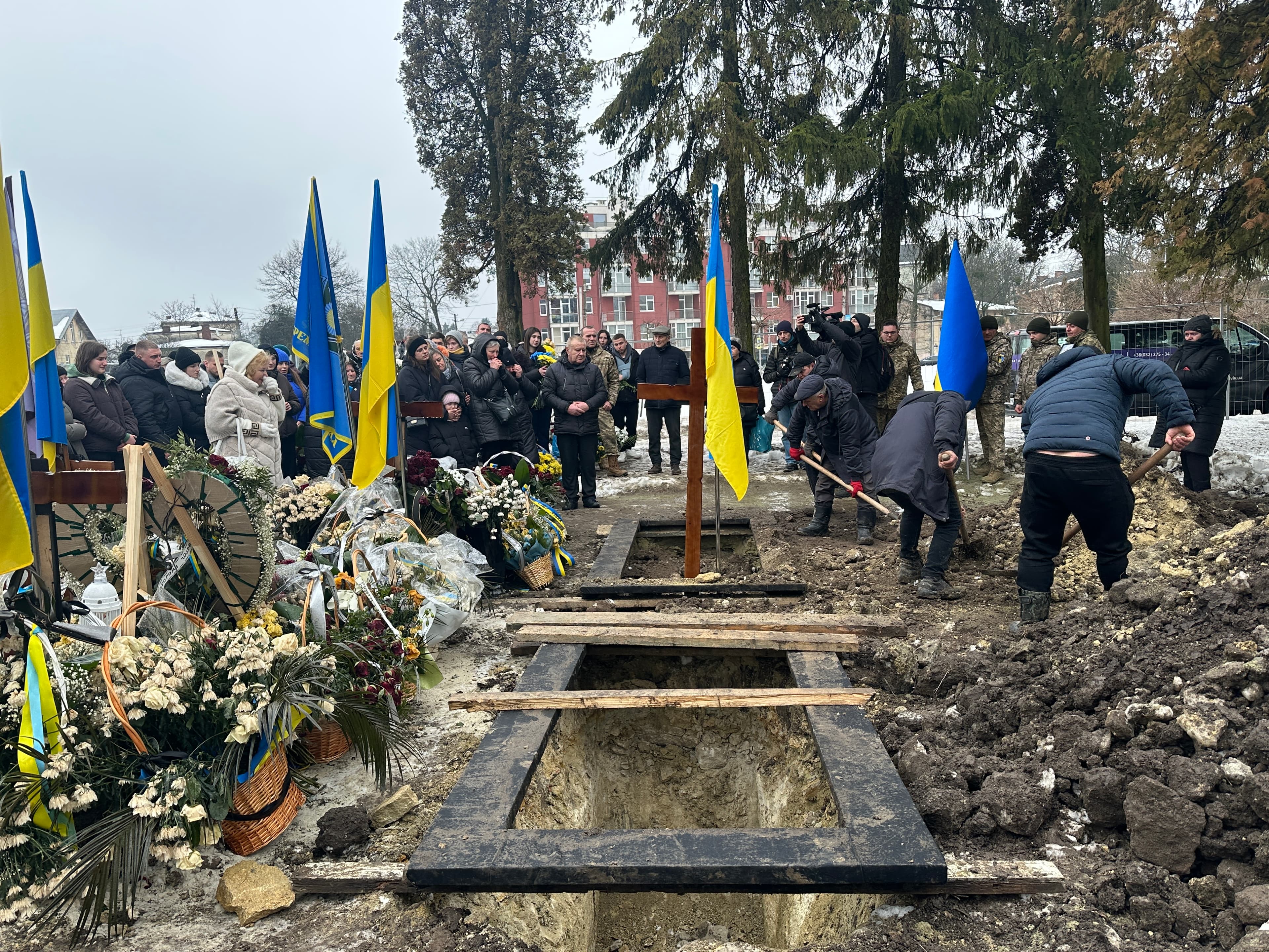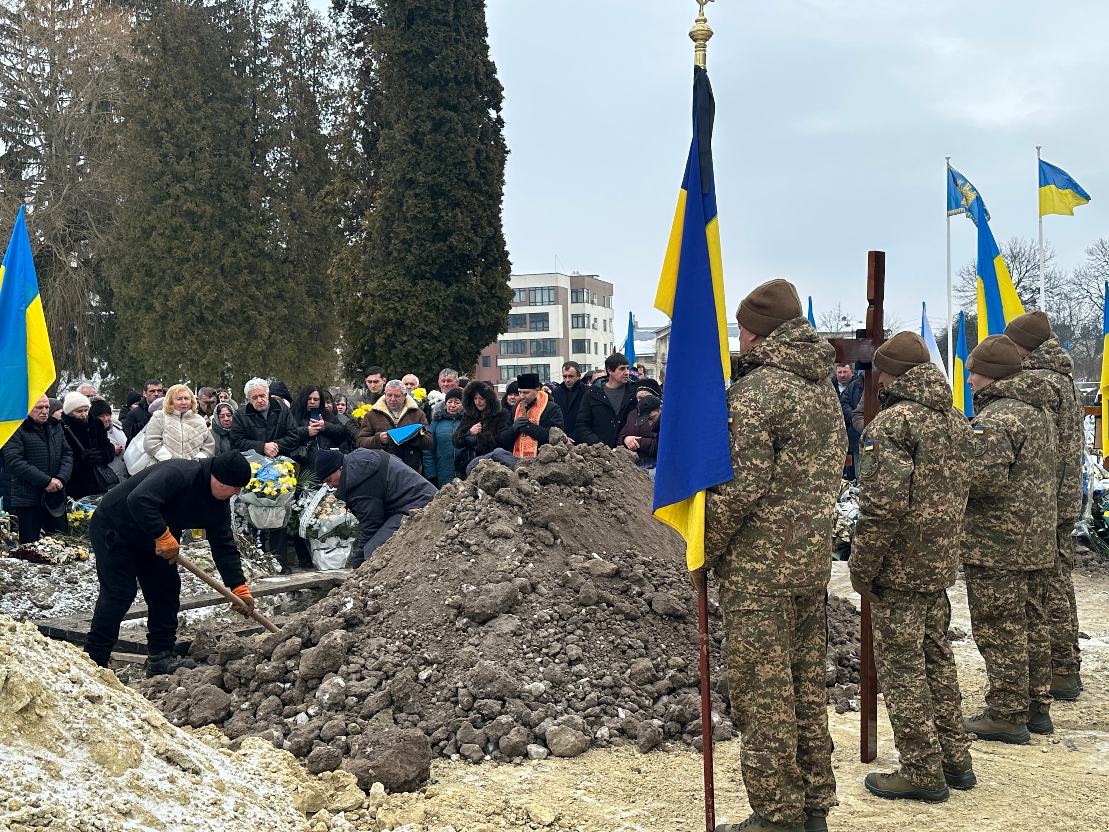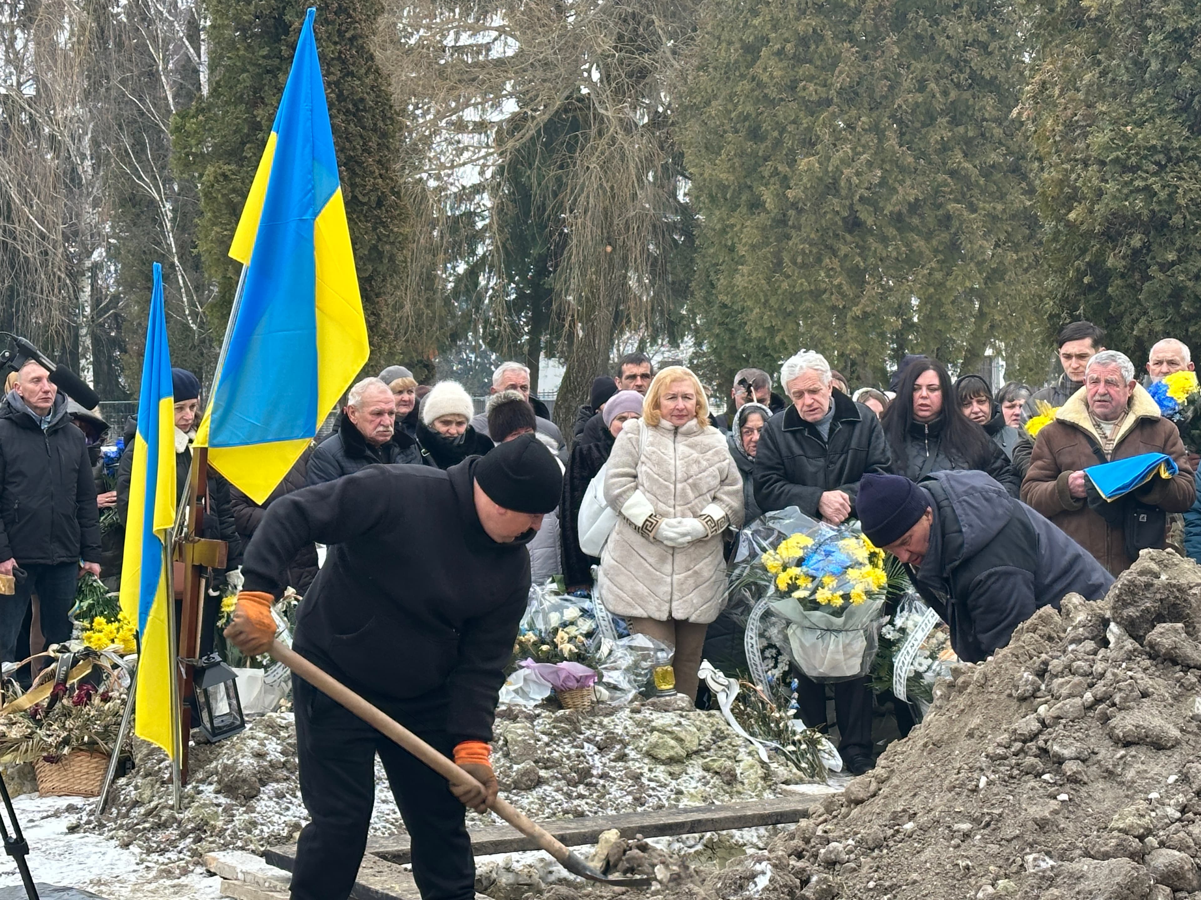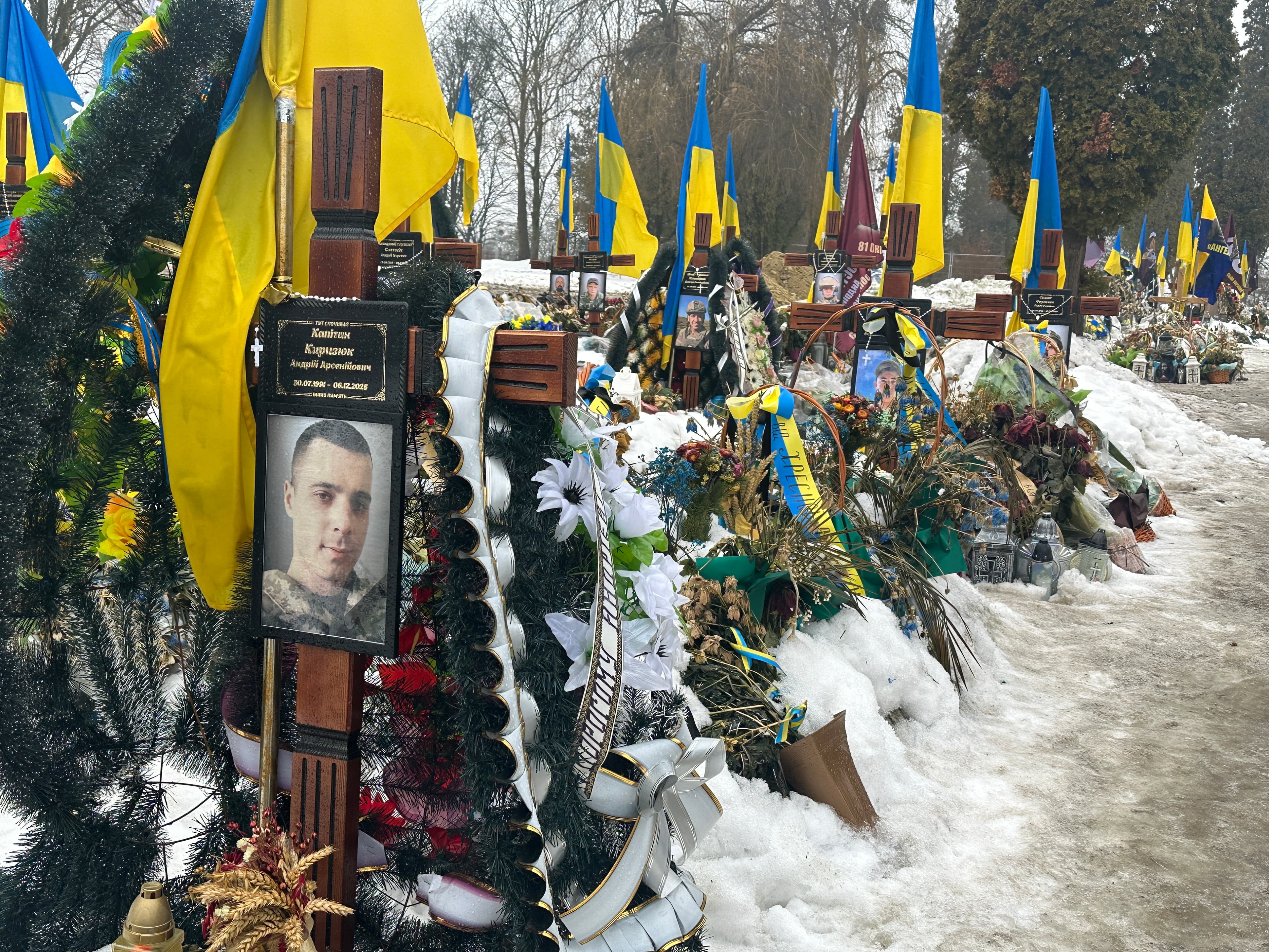 Сьогодні тут ховають 29-річного Андрія Бобеляка, який до мобілізації в 2023 році працював пекарем. Загинув він ще наприкінці 2024-го, але до початку 2026-го вважався безвісти зниклим під Покровськом. Лише нещодавно експертиза ДНК тіла, повернутого минулого літа завдяки обміну, підтвердила: Андрій таки загинув.