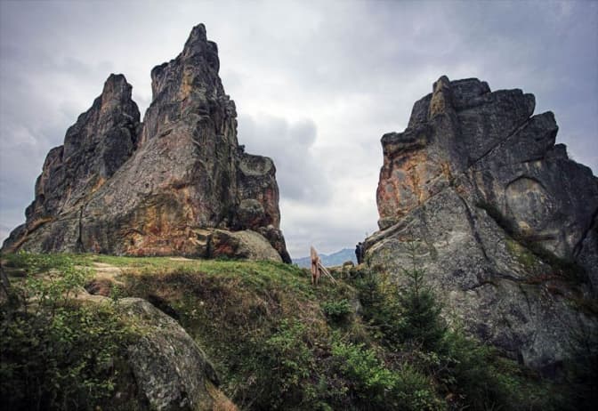 У процесі денатурації пісковики змінювали свій первісний вигляд, набуваючи дивовижних форм і витворів. В одних місцях вони виступають у формі великих монолітів, в інших – у формі безладно сформованих брил. Тут є багато природних тріщин, печер, в тому числі і рукотворні. У нижній частині скельних виступів внаслідок розширення вертикальних тріщин водними потоками утворилась низка гротів до 2 м заввишки та 3-5 м завдовжки. У міфах та легендах знаходимо назви «Чотири Велетні», «Три пальці», «Чотири списи», «Орел».