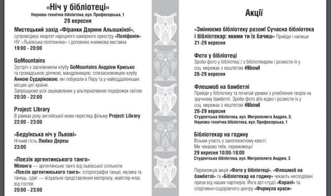 Науково-технічна бібліотека Львівської політехніки в рамках події «Ніч в бібліотеці» запрошує студентів та всіх небайдужих до читання львів’ян взяти участь в акції «Відкрий іншу бібліотеку для себе і будь як вдома!»
