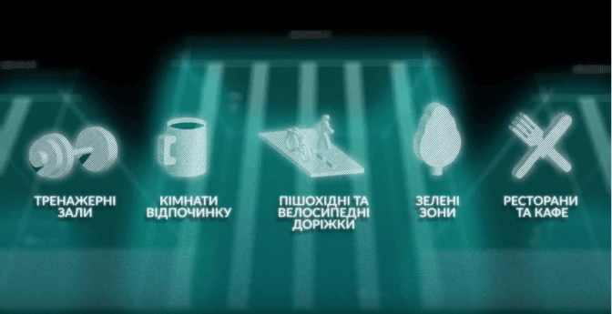 Проект передбачає спорудження за принципом «Живи — працюй — навчайся — відпочивай» комплексної інфраструктури: ділової (офіси класу А, конференц-центри), технологічної (всі необхідні комунікації) та соціальної (заклади освіти та відпочинку, медичні центри, житло, магазини, кафе на 120 осіб тощо).