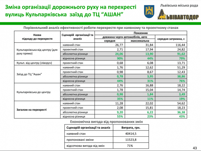 За його словами, річний економічний ефект від такого нововведення – 50 тисяч гривень. Зараз ця ідея на етапі обговорення. Ускладнює процес те, що світлофор знаходиться на балансі гіпермаркету «Ашан», доцільно було би його передати ЛКП «Львівавтодор».