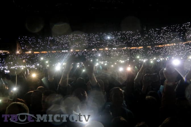«Арена Львів» швидко перетворюється на єдине ціле. І цей новий організм відчуває своїх кумирів із півслова. «Я дякую вам за те, що тут ніколи не треба додатково нагадувати увімкнути ліхтарики», – каже Славко після того, як стадіон загоряється тисячами вогників під час виконання пісні «Мовчати» групи «Скрябін». Особливо пронизливий момент.