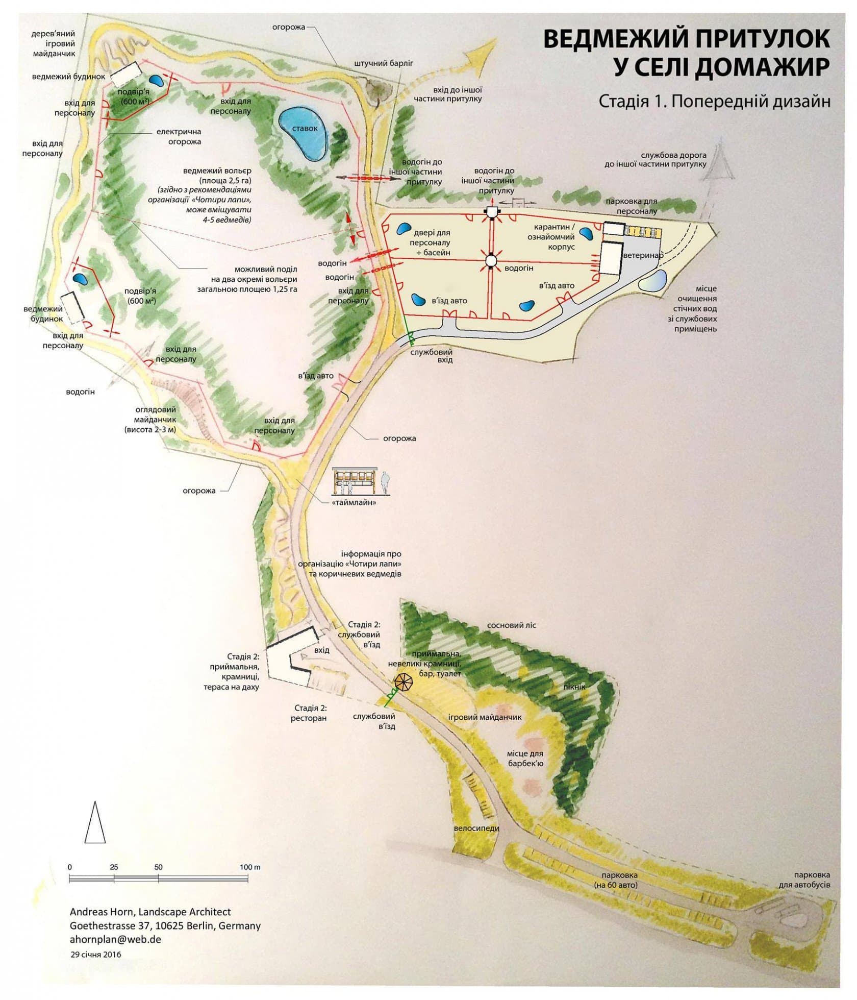 Селище Домажир розташоване за двадцять кілометрів від Львова. Зараз сюди доїхати можна 125-тою маршруткою до зупинки Ямельня, а далі зробити ще рівно 2640 кроків сільською дорогою до самого ведмежого притулку. Відстань до свого нового місця роботи вже встигли прорахувати тутешні працівники. Сподіваються, що зовсім скоро тут відремонтують дорогу й пустять декілька автобусів. Поки що йдуть пішки.
